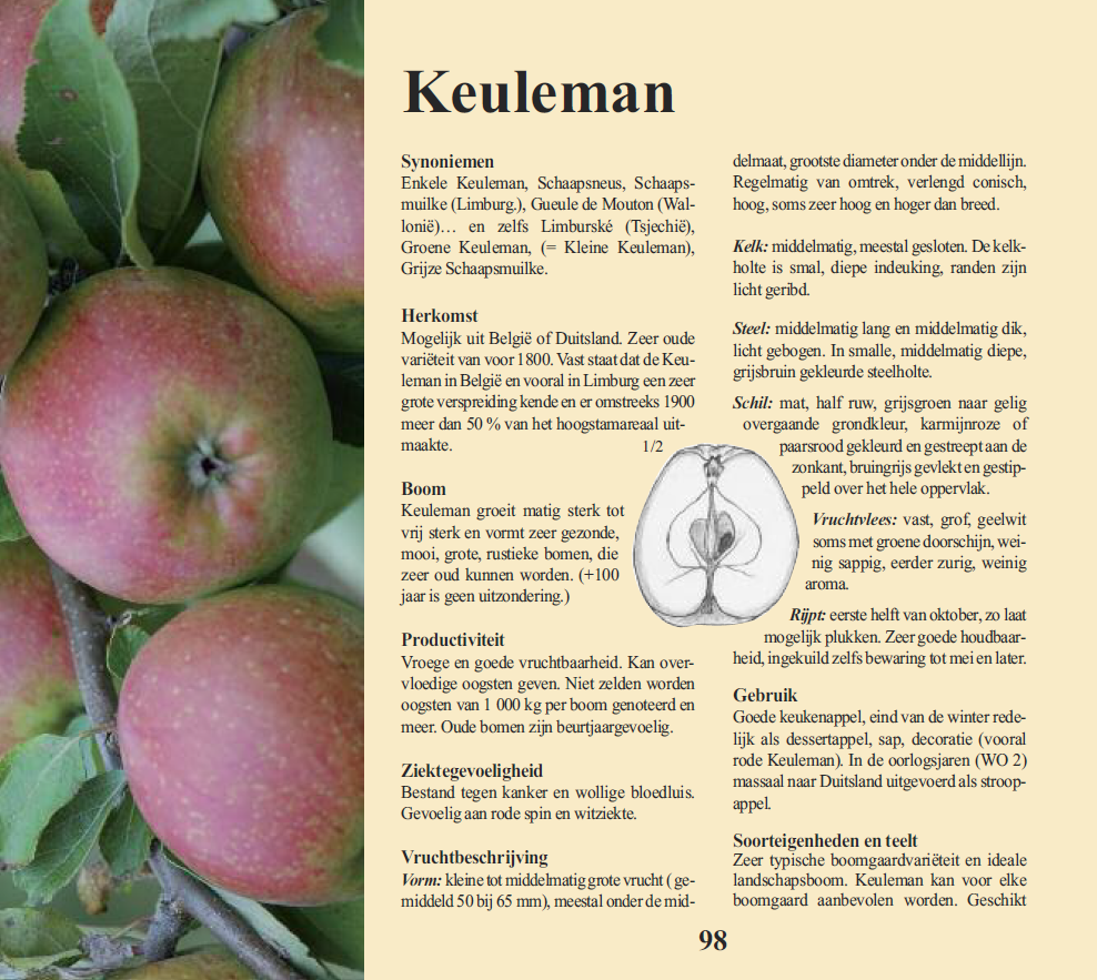 inds 2015 bracht de NBS i.s.m. de provincie Limburg reeds twee boekwerken uit om eindelijk het fruitpatrimonium van de provincie Limburg te beschrijven: Deel I: Peren en Deel II: Appels. Kersen, pruimen, perziken … zijn voorbehouden voor een volgende uitgave. Alvast iets om naar uit te kijken.