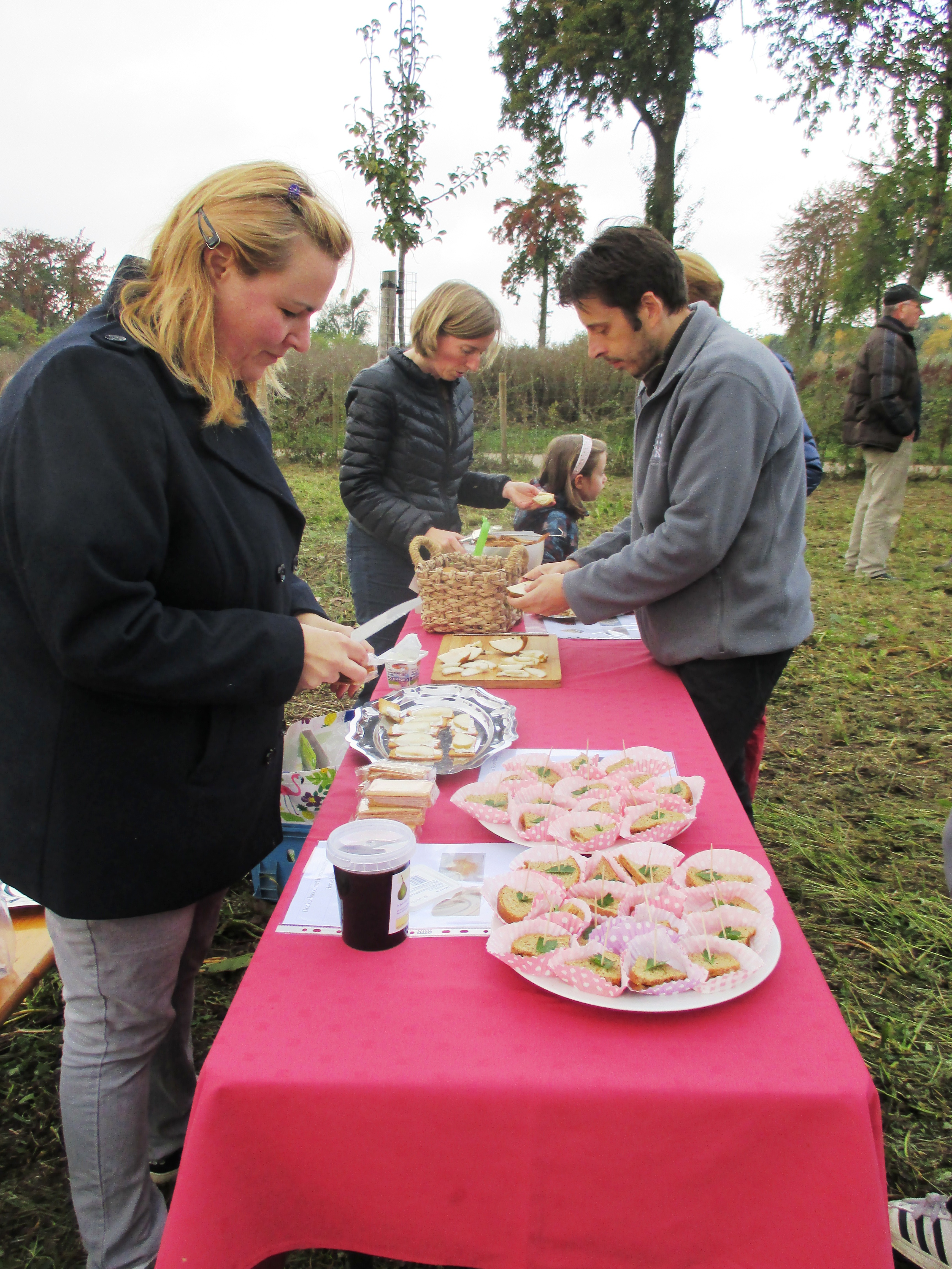 De boomgaard gebruiken als locatie voor een knabbel en babbel, een feestje of receptie… een idee dat we samen met de buurt uitwerkten. Terwijl de buurtbewoners en enkele NBS medewerkers ter plaatse enkele hapjes en drankjes bereidden met de vers geoogste vruchten uit de boomgaard, genoten de genodigden en de toevallige passanten van de gezellige sfeer, de mooie omgeving en vooral van al het aangeboden lekkers…