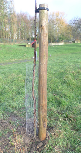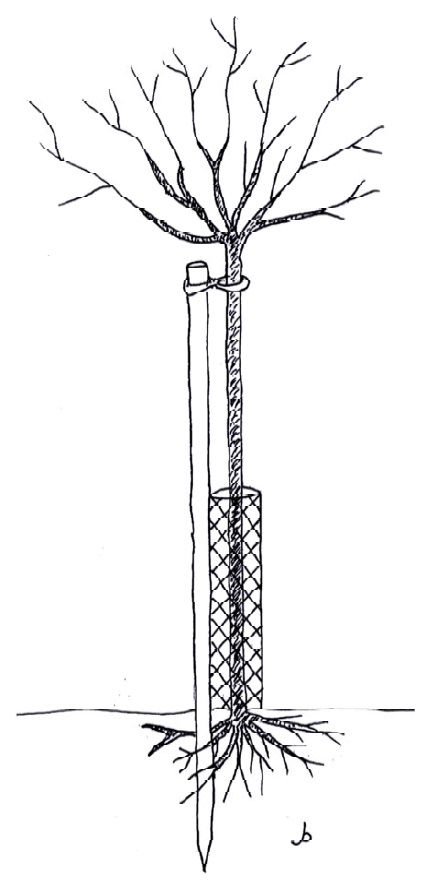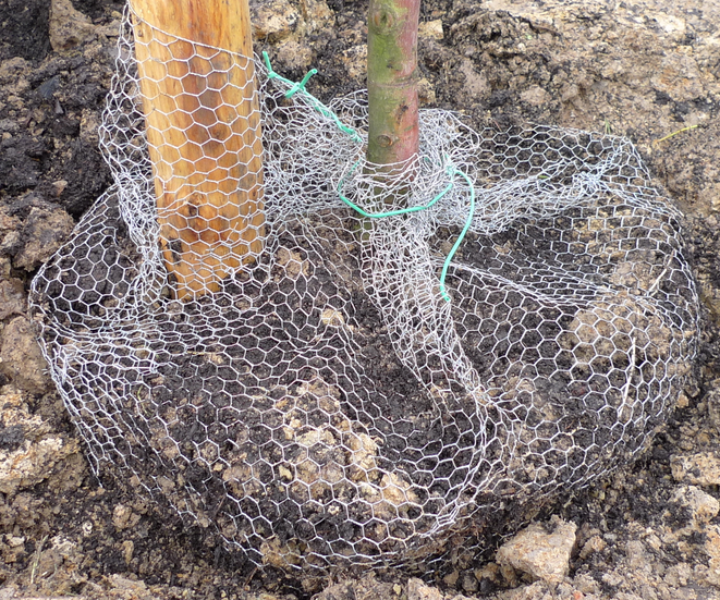 Omwille van het kleinere formaat volstaat hier een lagere en lichtere constructie. Het omwikkelen van de stam met een fijne mazendraad van 1 m hoogte, bevestigd aan de boompaal, is doorgaans voldoende. Deze constructie volstaat ook voor ganzen, die eveneens de schors van jonge fruitbomen lusten.