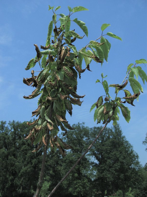 - In een verder stadium gaat ook de schors rimpelen en sterft de twijg af.